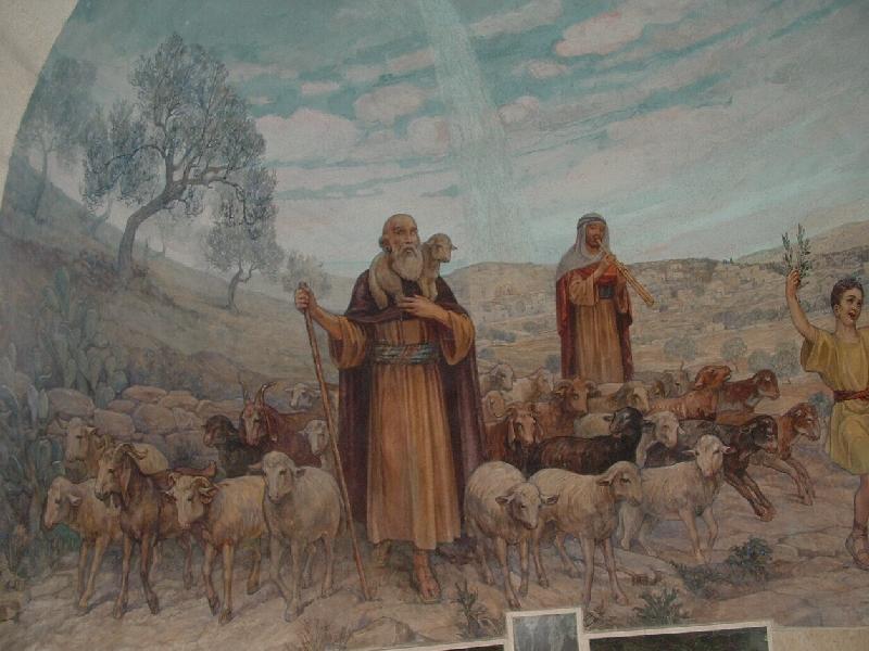 Beautiful painting done in an ancient cave in Bethlehem. Picture taken by Jozantonio 2006. Bethlehem.