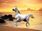 A grey Arabian on the beach