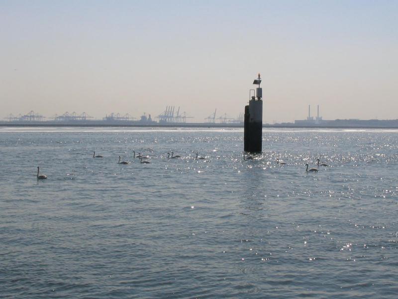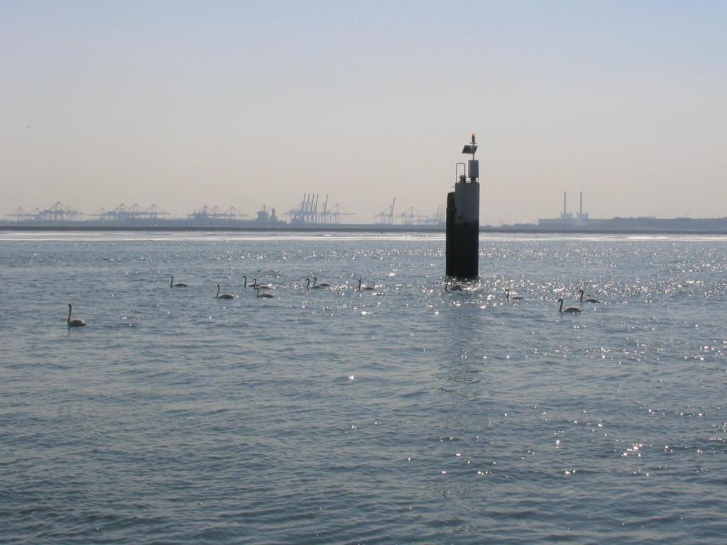 With the industry of the Rotterdam harbor going on in the background, these swans look rather blissful.