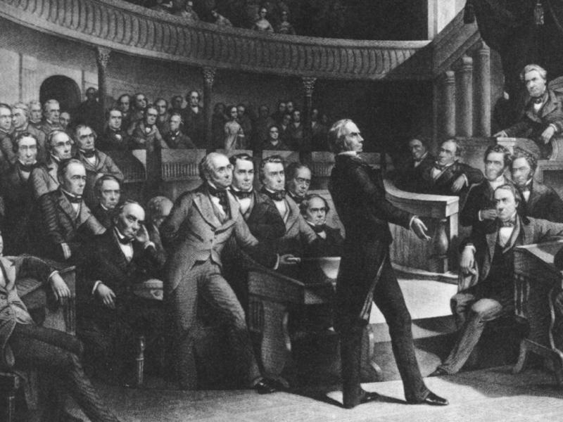 Clay, Fillmore, Clahoun, Webster in the Senate, 1850. Public domain.