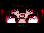 a title of elfen lied consisting of young lucy reaching out w/ the older lucy's eyes in the back ground